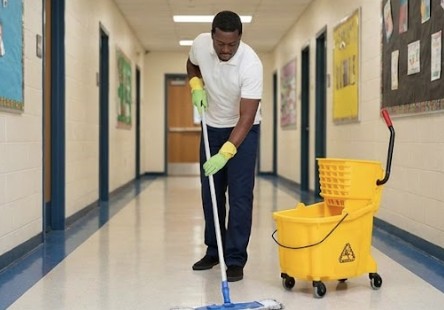 Suelos de Alto Tránsito: Fregado manual o mecanizado (con mopa industrial) para mantener grandes superficies siempre limpias y seguras.