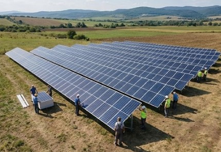 Ingeniería y Ejecución: Capacidad técnica y logística para desarrollar grandes parques fotovoltaicos en terrenos rurales (como se aprecia en la imagen de instalación sobre suelo), desde la obra civil hasta la conexión a red.